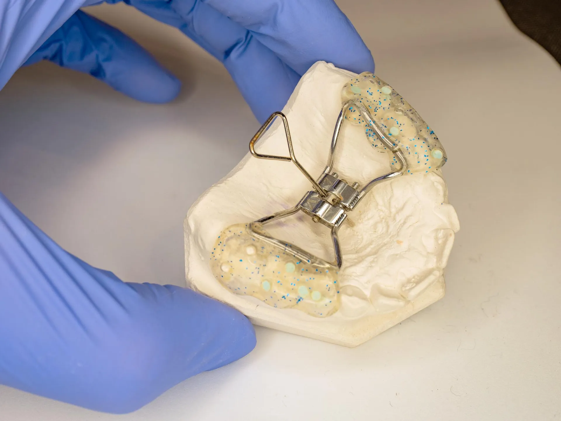 Следующий визит — это установка несъемных аппаратов. Специальный клей крепко фиксирует их на зубах. Ортодонт активирует винт, чтобы расширить верхнюю челюсть и создать пространство для правильного роста зубов.