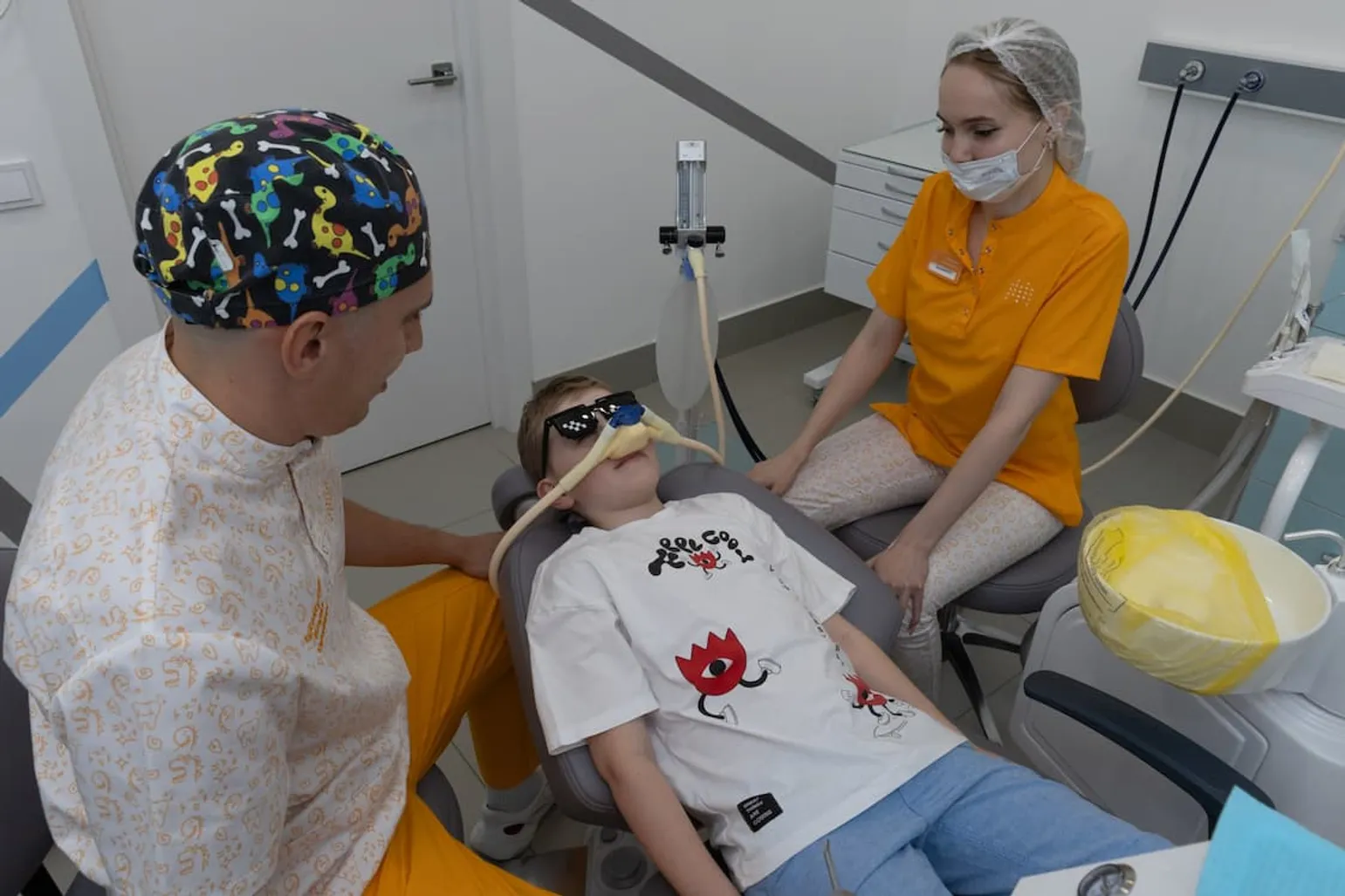 Сделав несколько вдохов, ребенок расслабляется, ему включают мультфильмы на телевизоре, в это время стоматологи приступают к проведению процедуры.