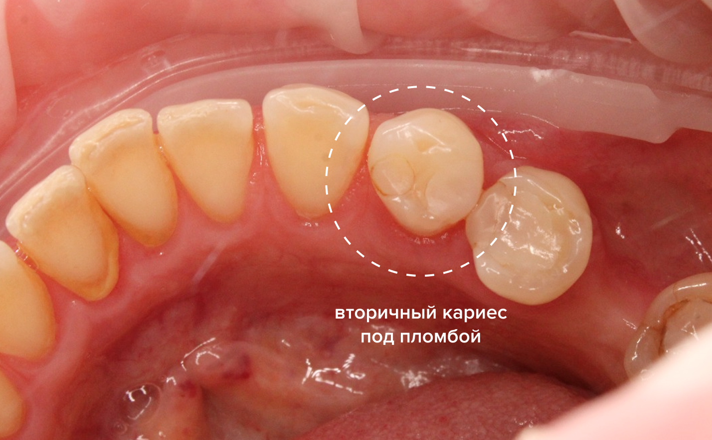 Вторичный кариес под пломбой медиально-дистально-окклюзионно