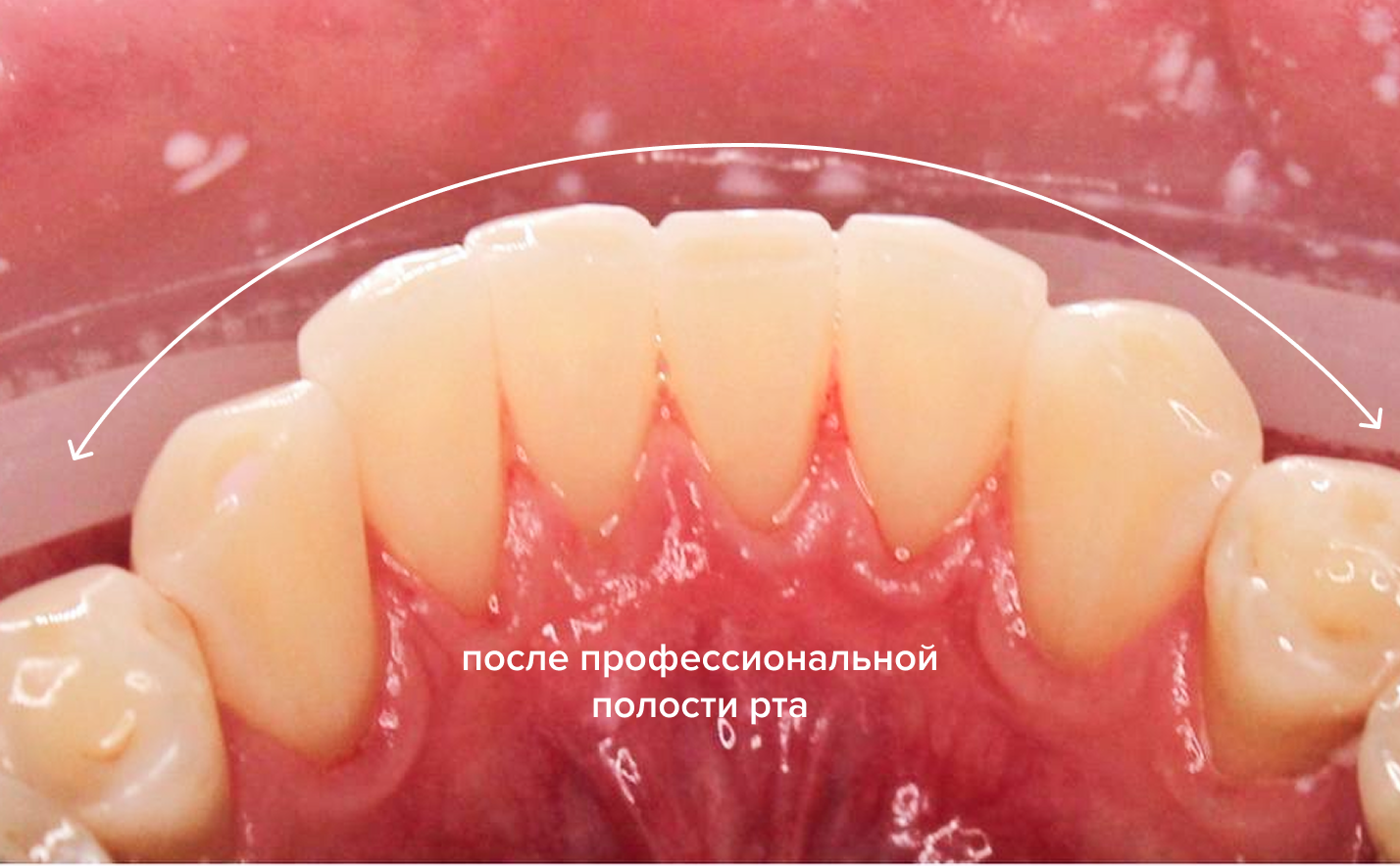 Проведена профессиональная гигиена полости рта с помощью утразвувого скалера и аппарата Air Flow, также отполировали зубы пастой и провели фторирование.
