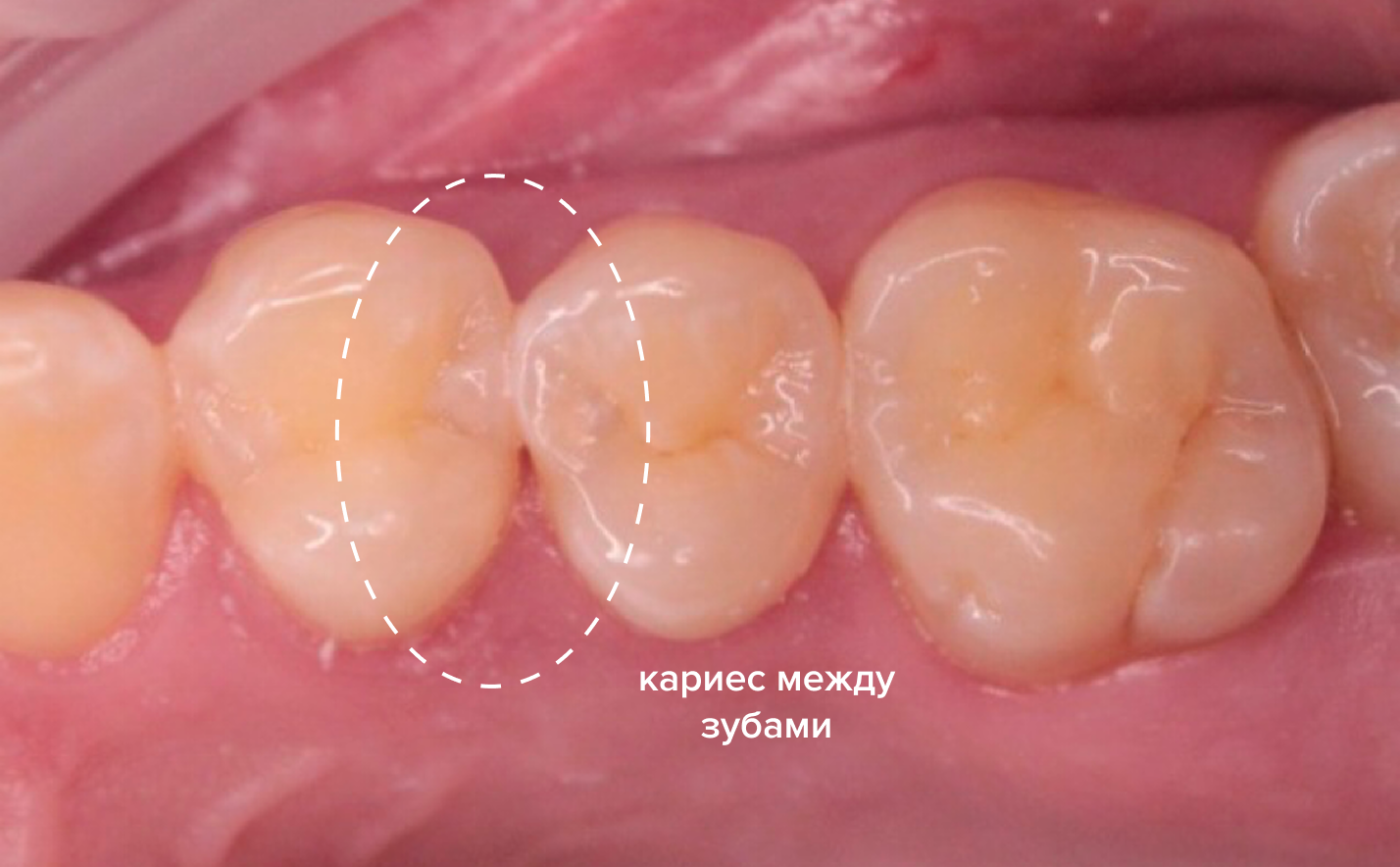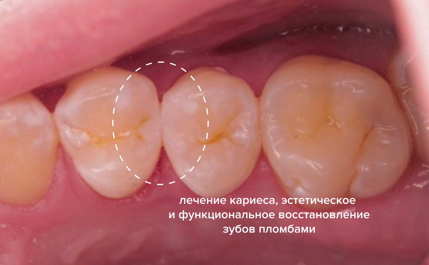 Проведено лечение контактного кариеса, эстетическое и функциональное восстановление зубов пломбами.
